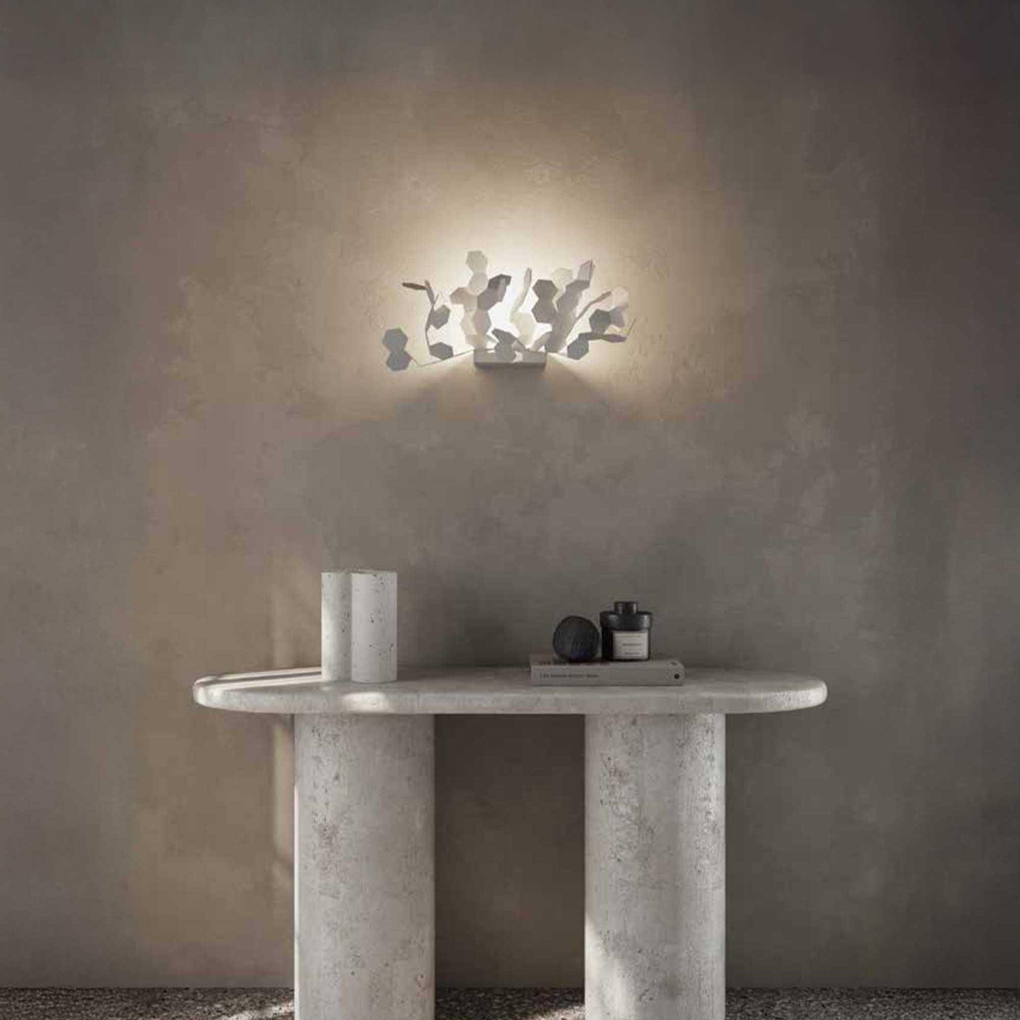 When switched on, Andromeda turns into an artistic atmosphere projector. Thanks to the irregular shapes and rotation of the diffusers, it creates a play of light and shadows on the surrounding surfaces that adds depth and character to the space. This effect is not only aesthetically impressive, but also promotes the mood and visual dynamism of the room, setting Andromeda apart from conventional wall lights.