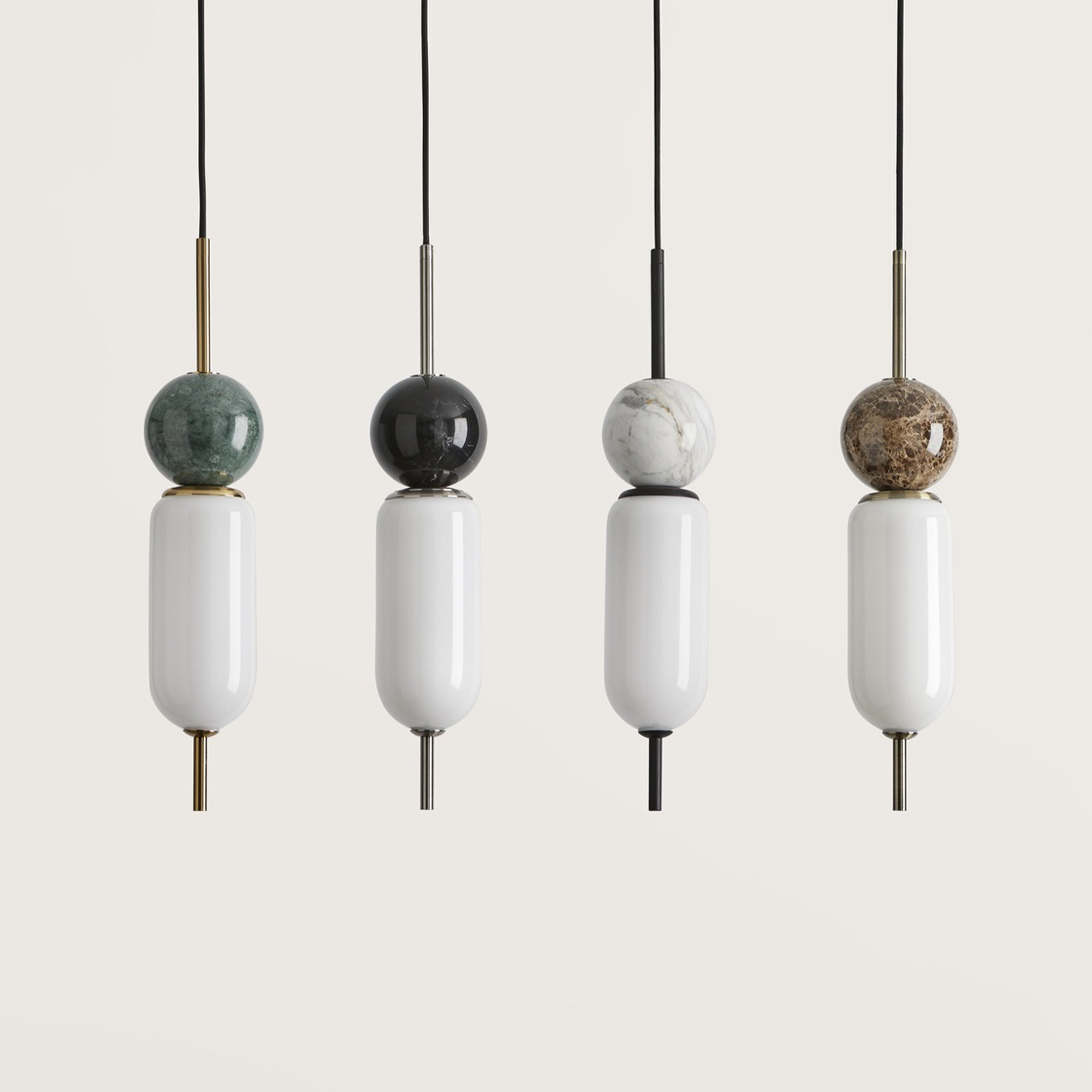 Závesné svietidlo Anet od španielskej značky Aromas del Campo je elegantný dizajnový prvok, ktorý spája hladké minimalistické línie s luxusným detailom v podobe dekoratívnej mramorovej gule. Hlavné telo svietidlá tvorí podlhovastý opálový difúzor, ktorý vytvára mäkké a rovnomerné osvetlenie, zatiaľ čo kovové časti si môžete vybrať v štyroch štýlových povrchových úpravách - nikel, čierna, zlatá alebo bronzová. Dekoratívny prvok z prírodného mramoru je k dispozícii v čiernej, bielej, zelenej alebo hnedej farbe, čo umožňuje dokonalé zladenie s interiérom. Svietidlo je vybavené dodávaným svetelným zdrojom G9(5 W - 2700 K) a vďaka svojmu čistému a modernému vzhľadu sa dokonale hodí nad kuchynské ostrovčeky, do obývačky alebo do elegantných komerčných priestorov.