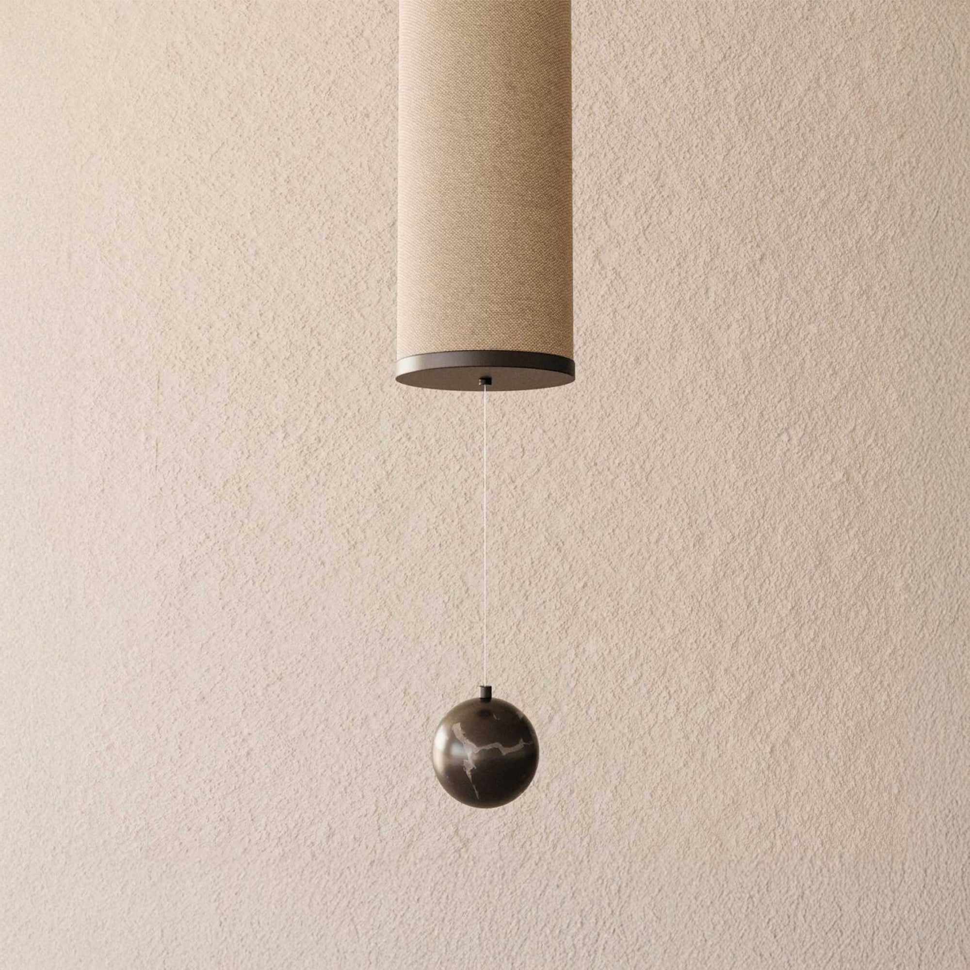 Nooi L od Aroma del Campo, navrhnuté dizajnérom Pepe Fornas, je závesné svietidloktorá prináša veľmi teplá a príjemná atmosféra Vďaka tienidlo z ľanovej tkaniny v krémovej farbe. Inšpirované Orientálne motívy, pridáva priestor elegancia a harmónia. Svietidlo je možné inštalovať vertikálne aj horizontálne, čo umožňuje jeho umiestnenie vedľa pohovky alebo ako závesné svetlo nad jedálenským stolom. Spodná časť sa skladá z čierny mramorový diskz ktorého je závesná dekoratívna mramorová guľa. V tejto guli je navyše výber zo štyroch farieb - čiernej, bielej, zelenej a hnedej. Kovové detaily a základňa sú vyrobené z matná čierna oceľ. Zdroj svetla T8 LED 14W poskytuje teplé biele svetlo (3000K)ideálny pre útulné a štýlové interiéry.