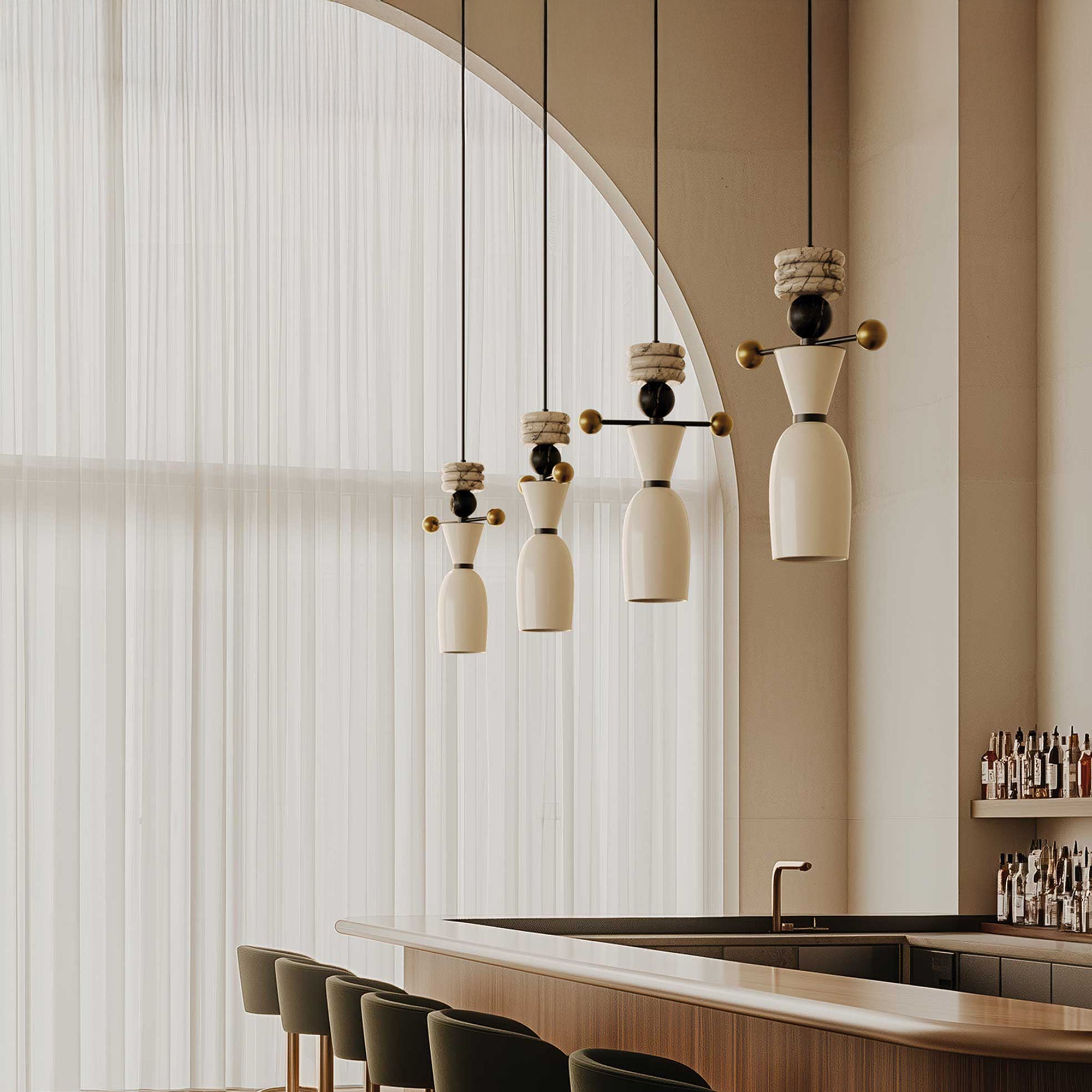 Závesné svietidlo Nuro od značky Aroma del Campo je originálny dizajnový kúsok z tejto kolekcie, ktorý kombinuje matný čierny kov s staré zlaté detaily, ručne vyrobená čierna mramorová guľa a mramorové príslušenstvo vo variantoch čierny, biely, hnedý, zelený alebo travertín. Horná a dolná časť tienidla je vyrobený z z vysokokvalitného skla k dispozícii v rôznych farbách podľa palety výrobcu, takže môžete prispôsobiť sa vášmu interiéru. Svietidlo je vybavené Zdroj GU10 5W 2700K 450 lm, ktorý je stmievateľný a je súčasťou balenia. Nuro prináša do priestoru nielen funkčné osvetlenieale aj výrazný dizajnový prvokktoré sa stanú dominantou vášho stropu.