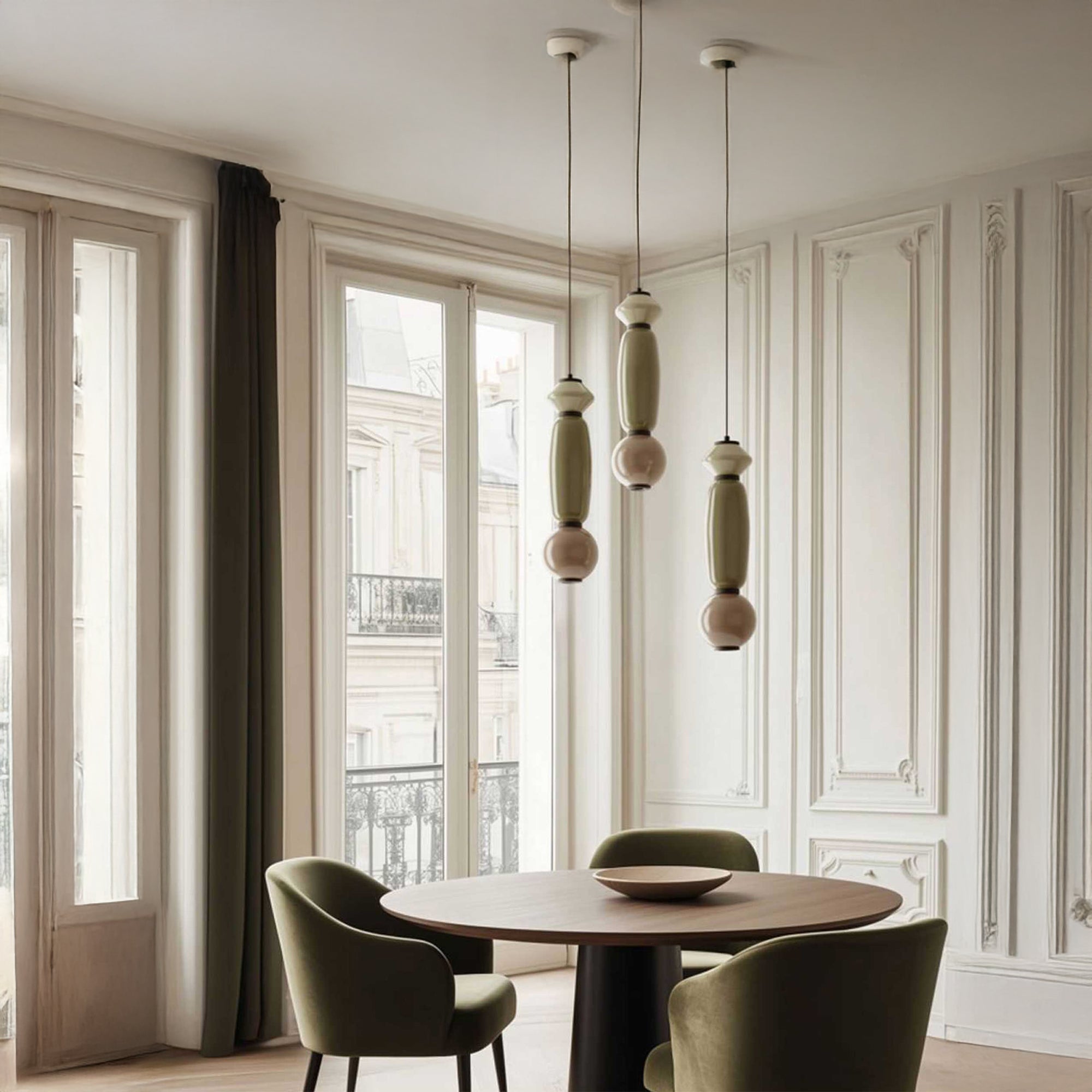 Závesné svietidlo Papi od španielskej značky Aromas del Campo navrhol Jose Fornas a ide o koncept zložený z rôznych geometrických tvarov, ktoré spolu vytvárajú jedinečné a elegantné svietidlo. Papi nemožno prehliadnuť v žiadnom interiéri - pôsobí ako socha, ktorá zanecháva výrazný dojem a stáva sa stredobodom pozornosti. Telo svietidlá je vyrobené z vysokokvalitného skla, základňa je z ocele s matnou čiernou povrchovou úpravou a zavesenie zabezpečuje 2 m dlhý kábel. Svietidlo obsahuje 1× GU10 LED 5 W s teplým 2700K svetlom. Farbu troch tvarov skla si môžete vybrať z palety farieb dostupnej v galérii obrázkov.
