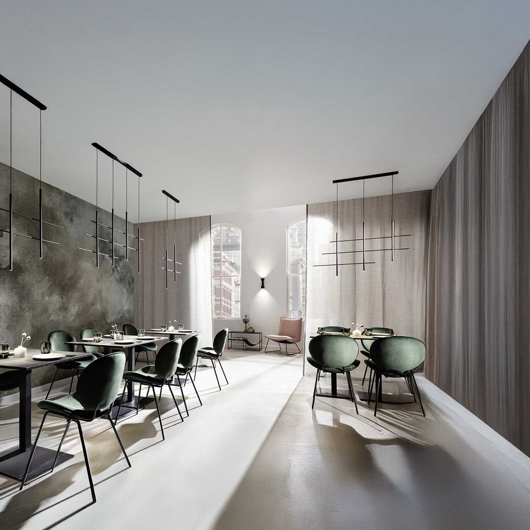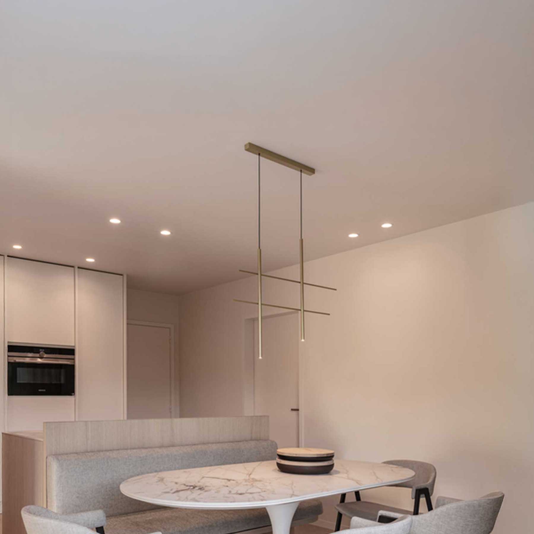 Svietidlo NET od belgickej spoločnosti Wever & Ducré je elegantné závesné svietidlo s 2 alebo 4 reflektormi vyrobené z hliníka s pololesklým mokrým lakovaním a čiernym káblom. Ponúka vysokokvalitné LED osvetlenie s CRI ≥ 90, teplotou svetla 2700 K a konzistentným podaním farieb vďaka kalibrácii ≤ 3 SDCM (MacAdam). Svietidlo je stmievateľné (fázové stmievanie), pracuje s napätím 220 - 240 V, má triedu ochrany I a krytie IP20, takže je určené len na použitie v interiéri. Svetelný zdroj môže vymeniť len autorizovaný odborník alebo priamo spoločnosť Wever & Ducré, zatiaľ čo ovládač (riadiaca elektronika) je vymeniteľný používateľom a je súčasťou balenia. Vďaka svojmu prémiovému dizajnu je ideálne pre moderné obytné a komerčné priestory.